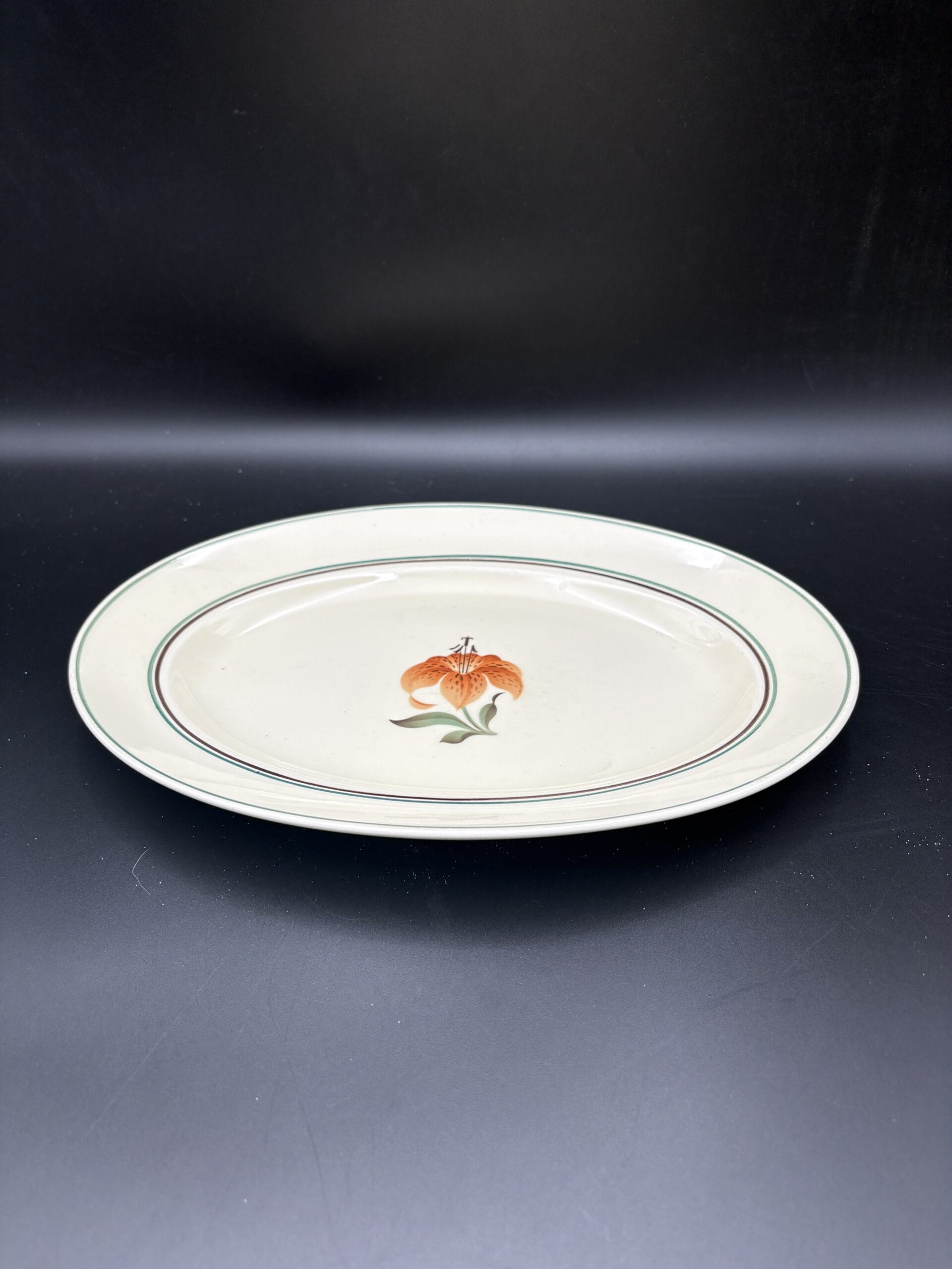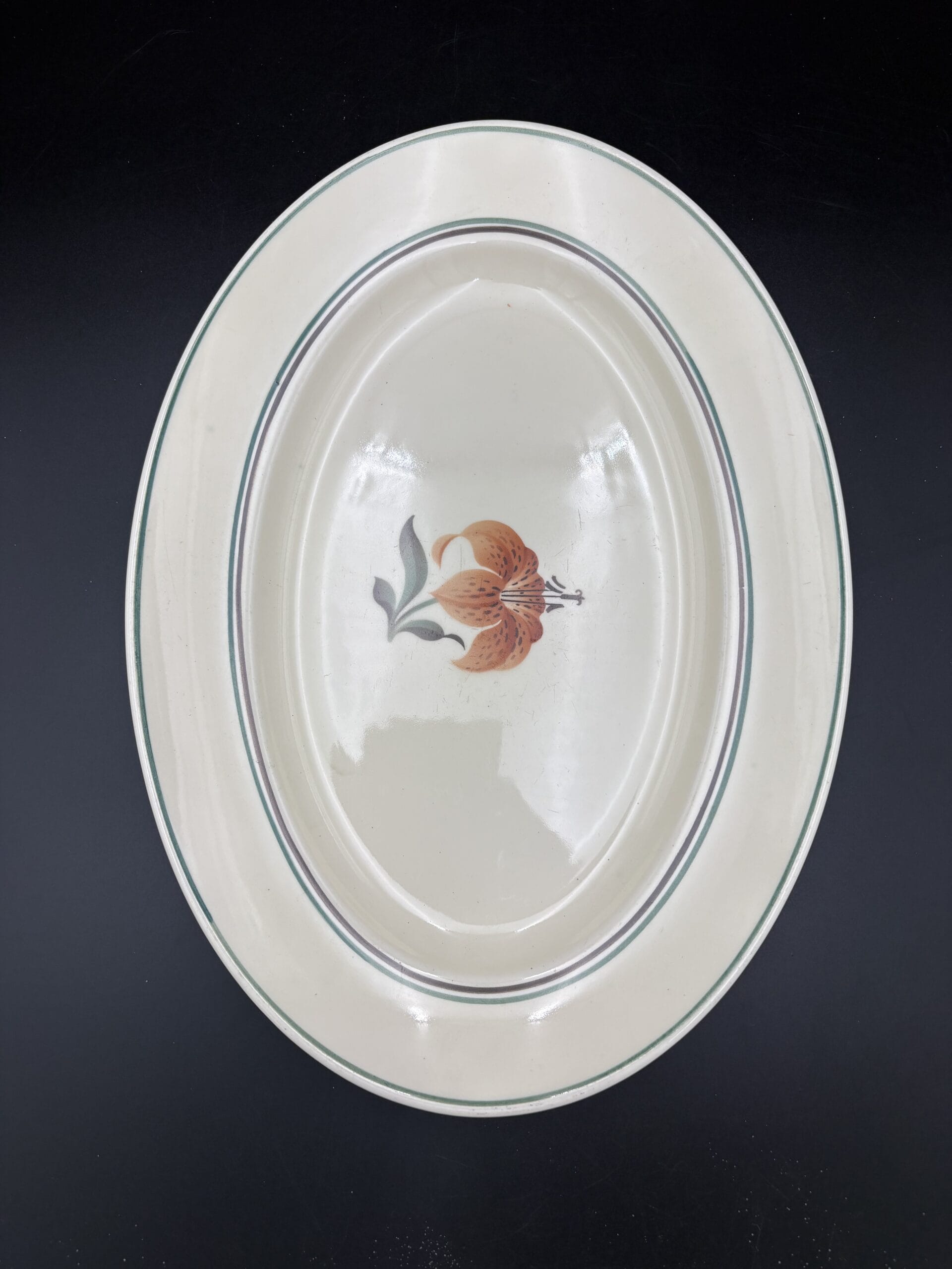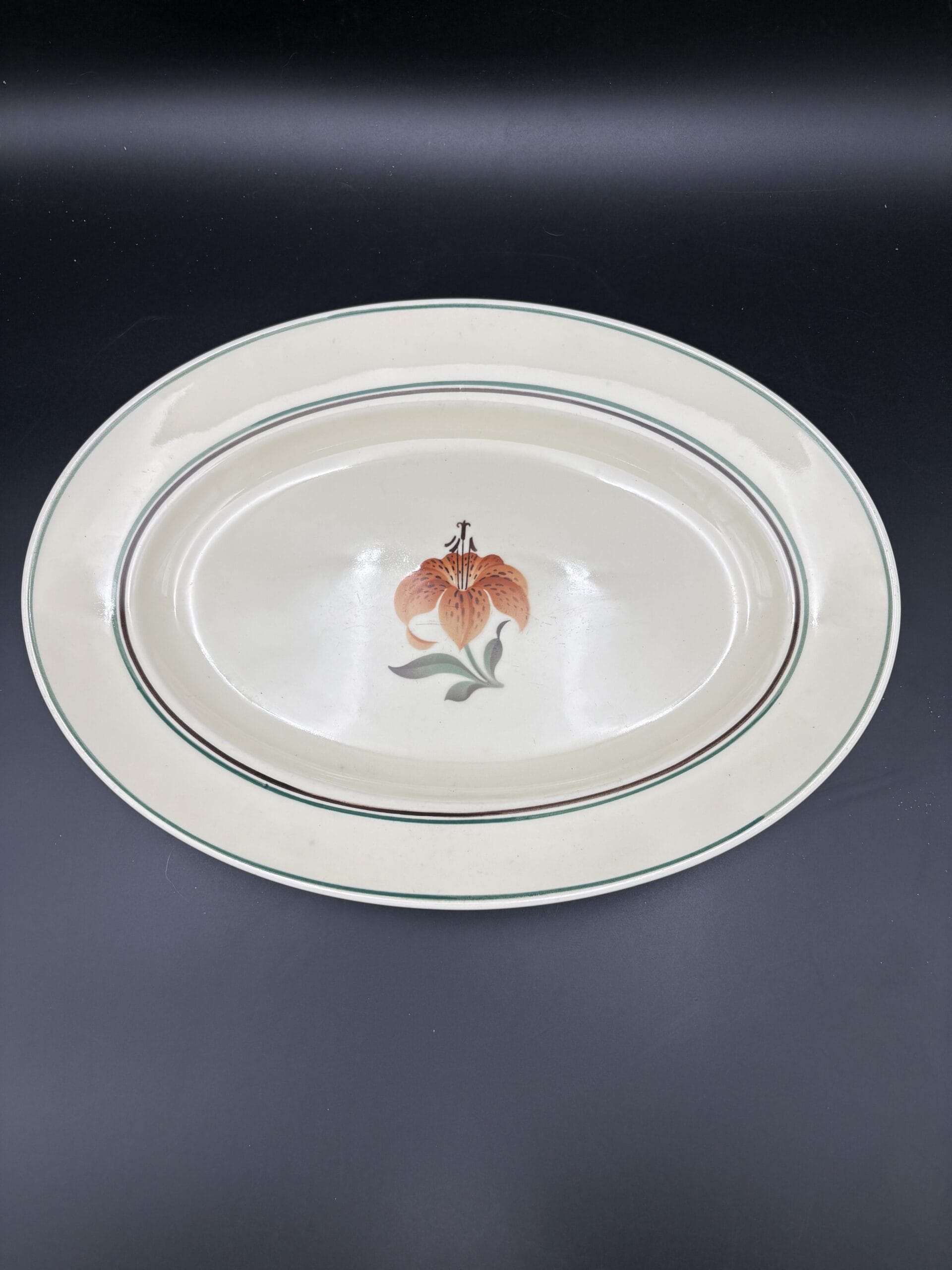 Stort lækker fad,ca.32,5x23cm i god stand . Da Aluminia er så gammelt, ser man ofte krakeleringer i glasuren, glasurfejl samt brugsspor. Hvis varen er i fin stand, menes det, at der ikke, er gennemgående revner, afslag eller kraftig misfarvning.