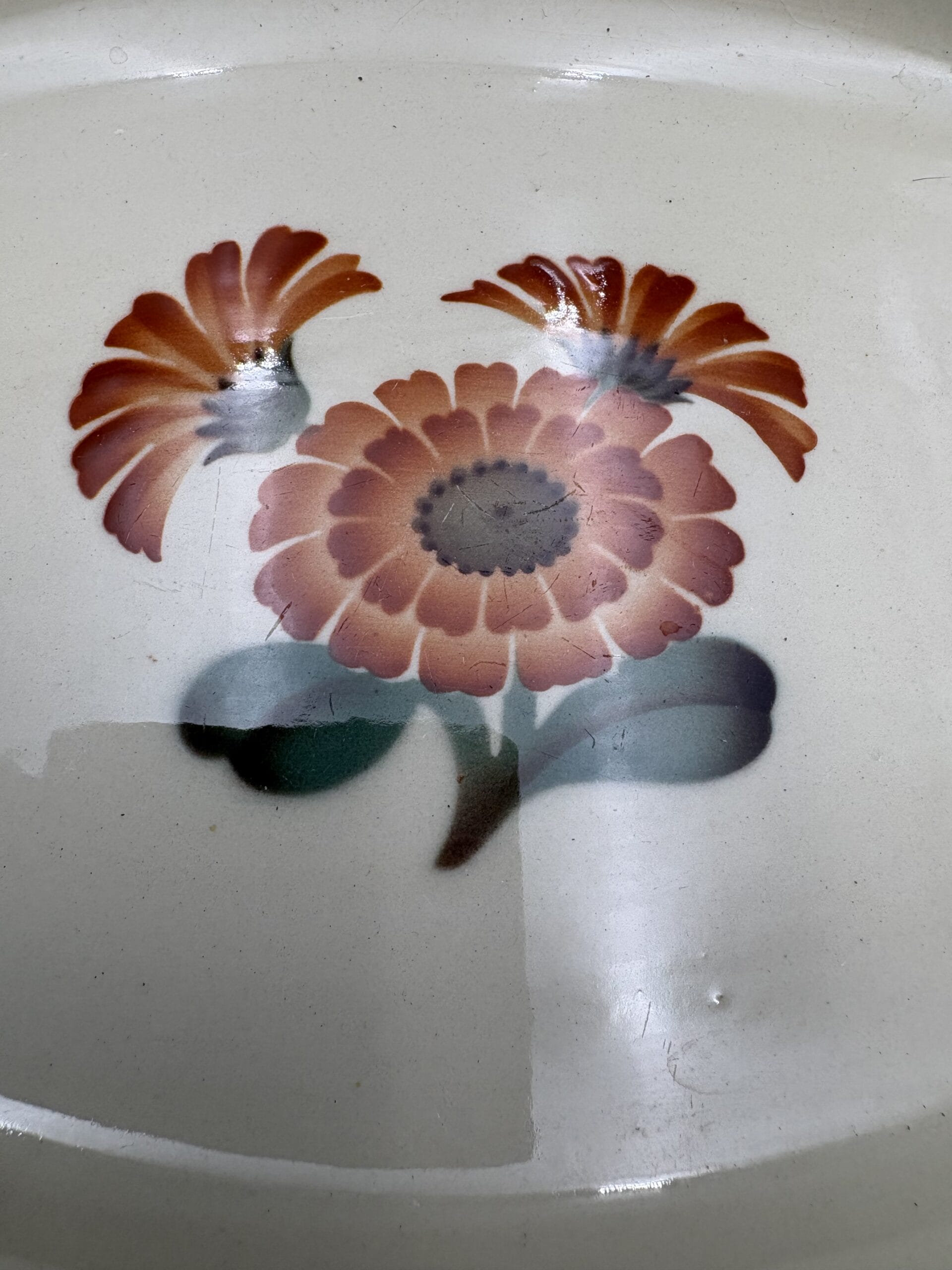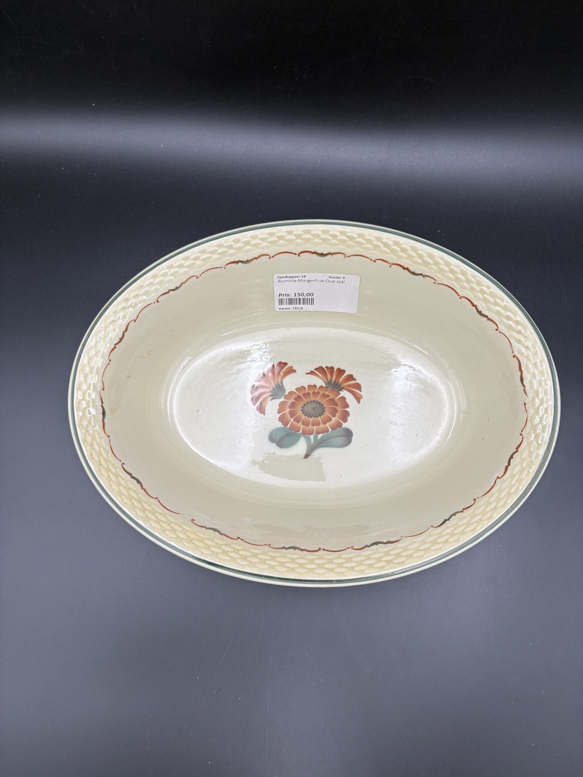 Super flot skål, ca. 29,5×22,5cm. I fin stand . Da Aluminia er så gammelt, ser man ofte krakeleringer i glasuren, glasurfejl samt brugsspor. Hvis varen er i fin stand, menes det, at der ikke, er gennemgående revner, afslag eller kraftig misfarvning.