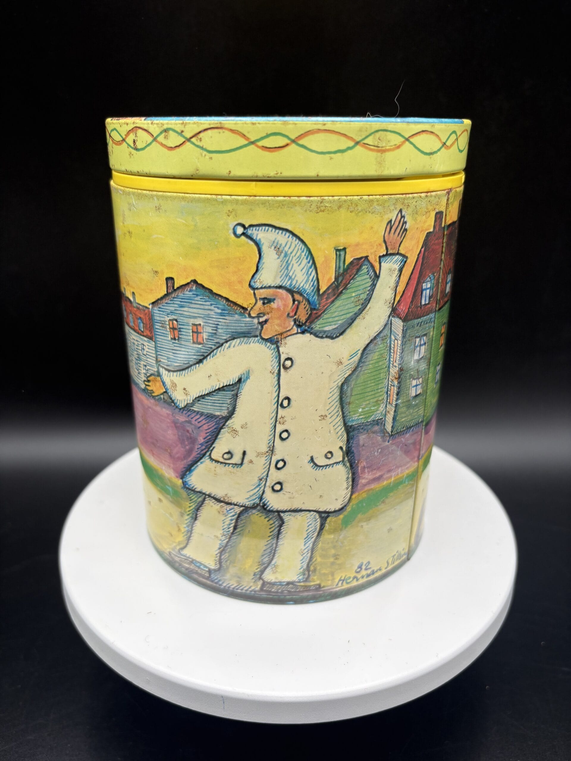 Den originale kunstdåse serie er lavet fra 1970-91 med i alt 27 forskellige dåser af skiftende kunstnere. Irma genoptog produktionen igen i 2000.Denne dåse er nr.18 i serien og designet af Herman Stilling i 1982. Dåsen er let anløben og med brugsspor.
